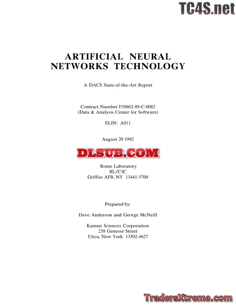 Dave Anderson And George Mcneill Artificial Neural Networks Technology