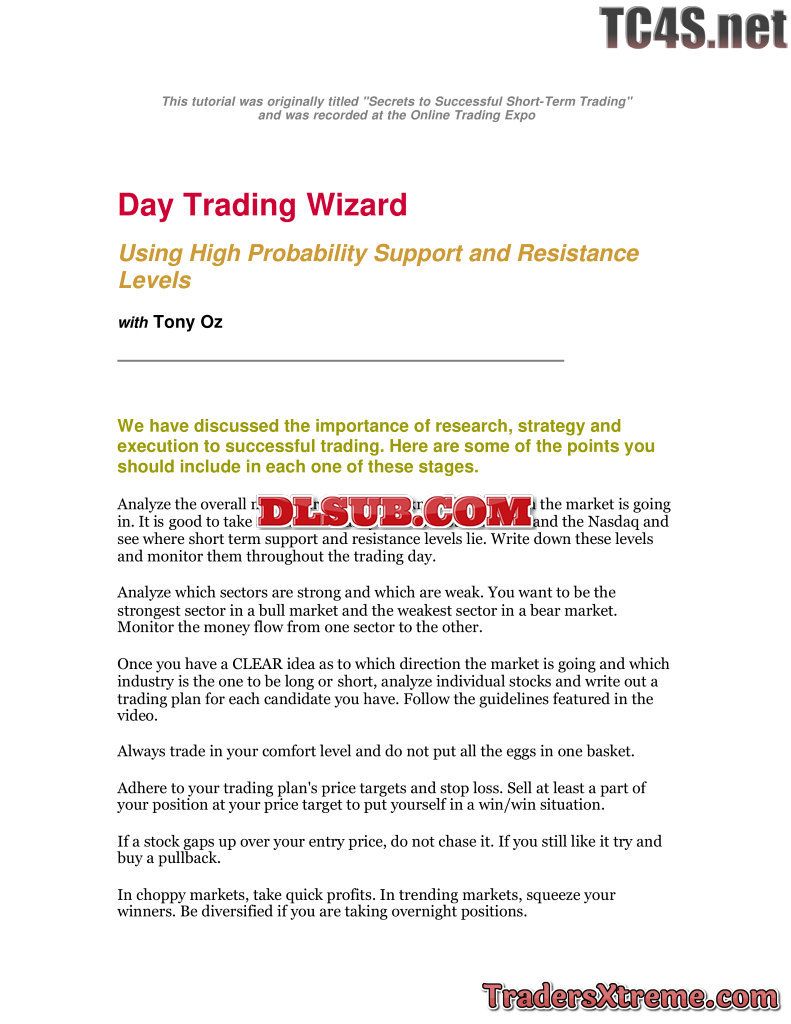 Day Trading Wizard Using High Probability Support And Resistance Levels - JPG Image File